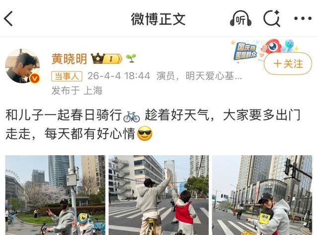 四月四日,明朗假期初始的第一天,黄晓明在酬酢平台共享了一条与犬子联系的动态。画面里,父子两东谈主衣服足下的衣服,在街上骑自行车,看起来是想愚弄假期享受户外时光。父子互动中带有收缩的氛围,仿佛在纪录一段普通的亲子时期。许多家长在带孩子出门时,也会有雷同的意见,但愿通过简便活动增进情感。