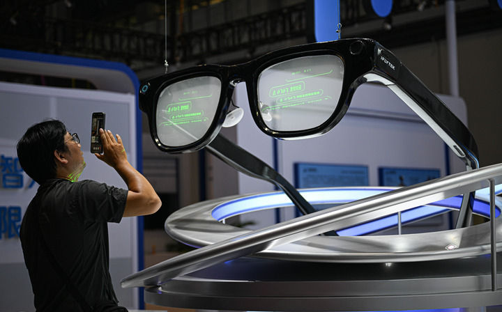 2026年4月10日在第六届消博会主会场拍摄的AI眼镜模子。新华社记者 蒲晓旭 摄