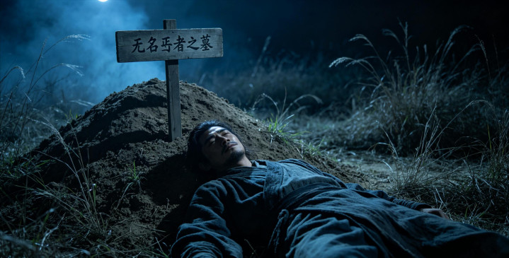 他睁开眼,发现我方躺在一派荒草地上,身边是一座孤零零的坟头。坟前立着一块木牌,上头写着“无名丐者之墓”。蟾光照在坟头上,阴雨可怖。他吓得周身发抖,爬起来想跑,却发现腿像灌了铅通常,迈不动步子。他垂头一看,我方的脚上不知什么时候被绑了一根绳索,绳索的另一端系在坟头的木牌上。