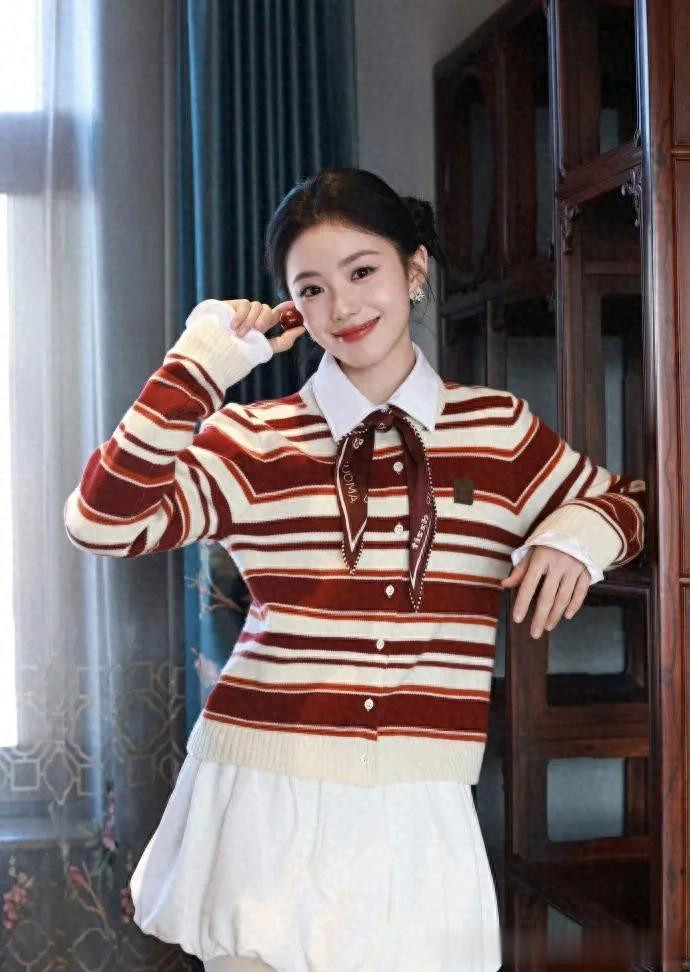 尊龙国际官网 刘浩存私服穿搭真漂后! 白衬衫+条纹开衫+短裙, 减龄又高档!
