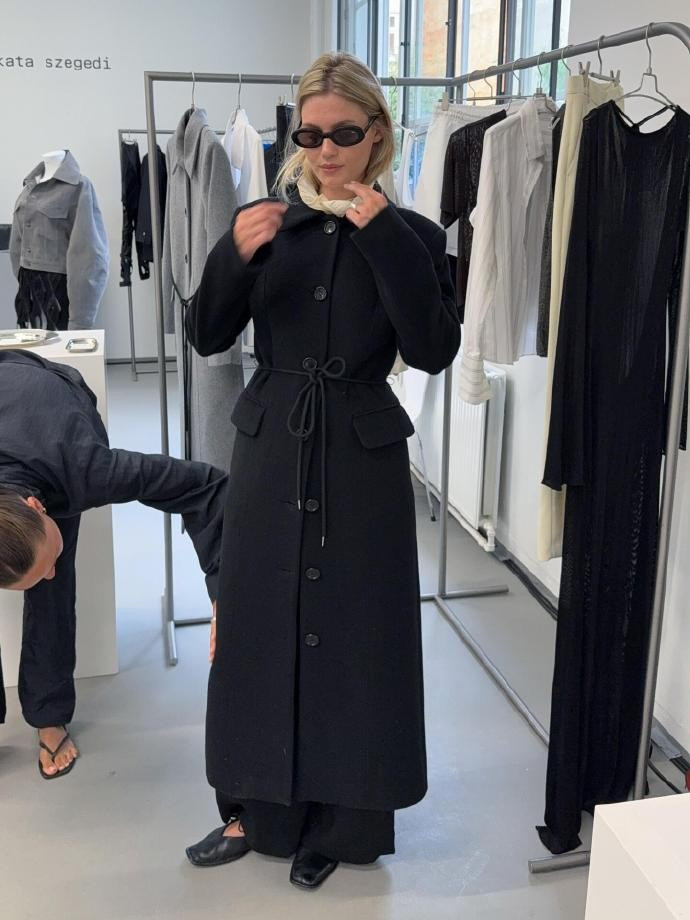 celinebramsen的极简风之是以能精确戳中“高”的痛点,中枢在于她对“纵向蔓延感”的极致把控。她很少采用腰线拖拉的宽松单品,反而偏疼带有明确腰线诡计的衣饰,不管是高腰直筒裤、收腰连衣裙,已经用腰带勾画腰线的长款风衣,皆能短暂拉长下半身比例,营造出视觉上的高挑感。同期,她还擅长哄骗“同色系穿搭”手段,从上衣到下装再到鞋子,采用饱胀度足下的同色搭配,窒碍身体的分割感,让线条更显通顺连贯,进一步强化高挑气场,这种不必靠增高鞋就能终端的“显高魔法”,恰是正常东说念主最值得模仿的关节。