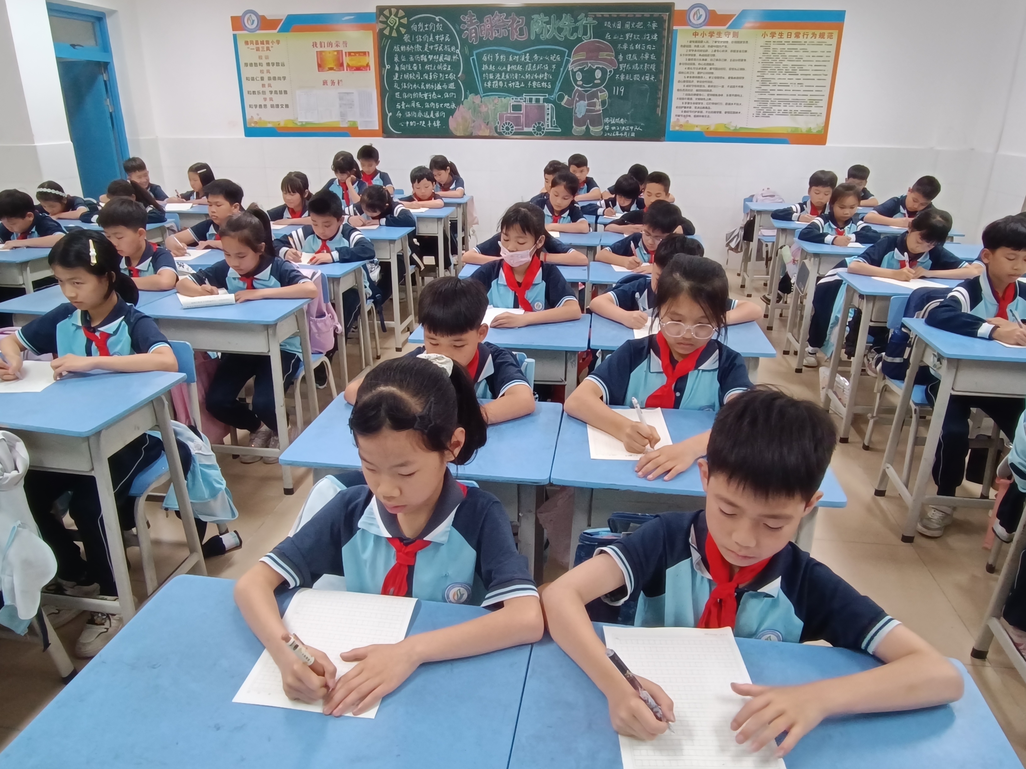 笔尖流转,童心耀眼。同学们伏案创作,将范仲淹的忧乐情愫、勤廉风骨、红色传承尽数融入诗句,用童真视角书写新时间少年的遭殃与担当,让勤廉精神在诗意中扎根,让湾区文脉在笔尖延续。