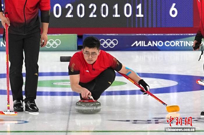 当地时辰2月13日,在科尔蒂纳奥林匹克冰壶馆进行的2026年米兰-科尔蒂纳冬奥会冰壶须眉轮回赛中,中国队6比8不敌挪威队。图为中国队选手许静韬在比赛中掷壶。 中新社记者 崔楠 摄