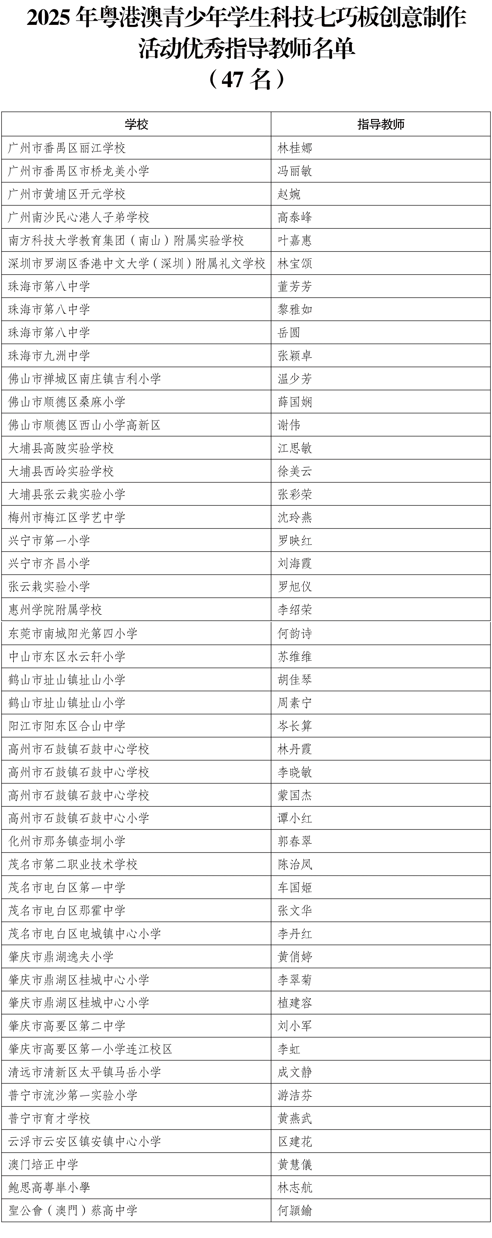 日前,广东省关爱下一代责任委员会、广东省科学时刻协会、广东省汲引系统关爱下一代责任委员汇聚首发布《对于公布2025年粤港澳青少年学生科技七巧板创意制作行径评比效果的奉告》。