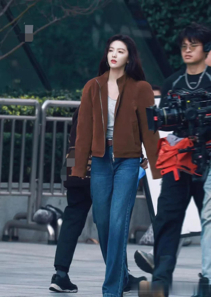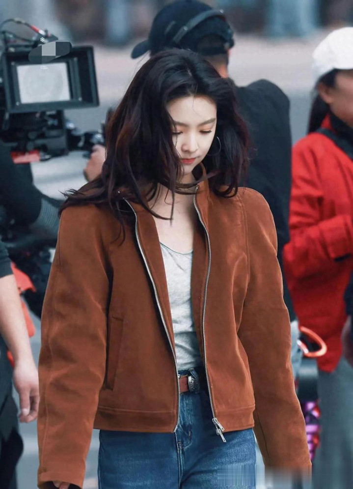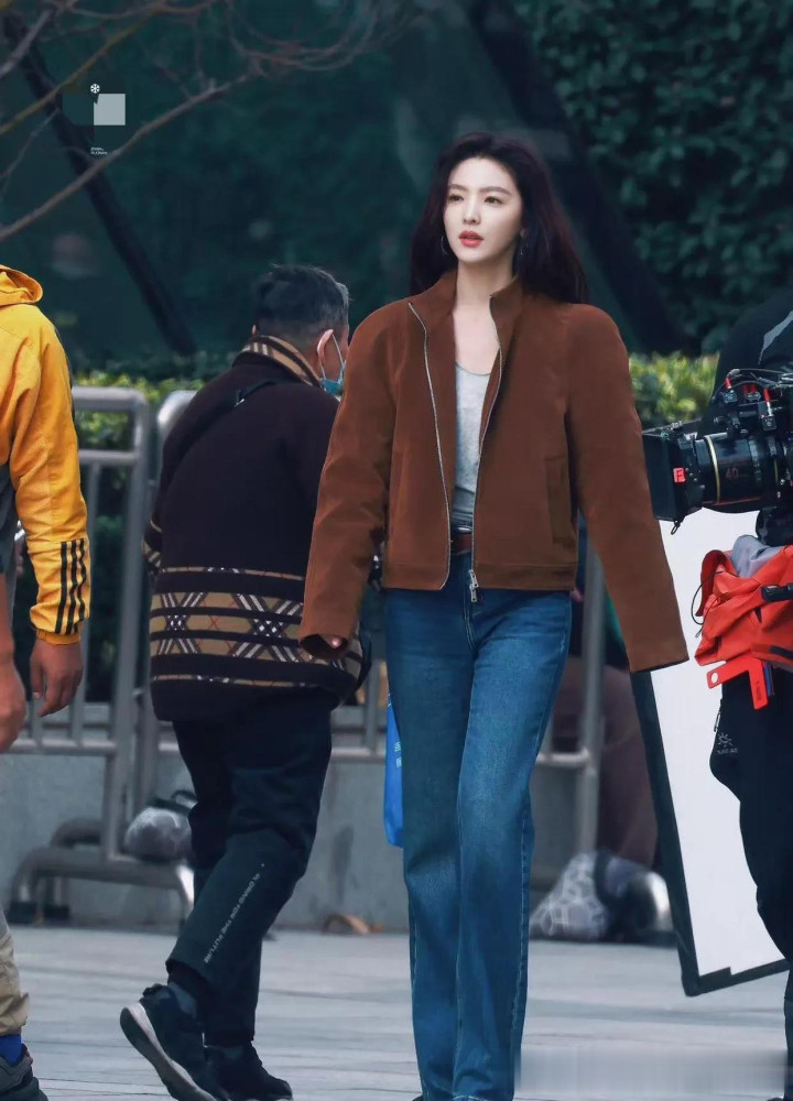 尊龙 章若楠会穿是数一数二的! 棕色外衣+牛仔裤, 细腻减龄又洋气