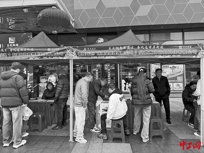 2月24日上昼,安徽省铜陵市在位于市中心的万达广场举办春风举止专场招聘会暨创业集市。这场开年“大集”提供了2000多个岗亭。活动现场,铜峰电子、旭创科技等多家铜陵市要点产业链企业的招聘展位一字排开,不少展位前挤满了求职议论东谈主群。本报记者 陈华 本报通信员 路璐 摄