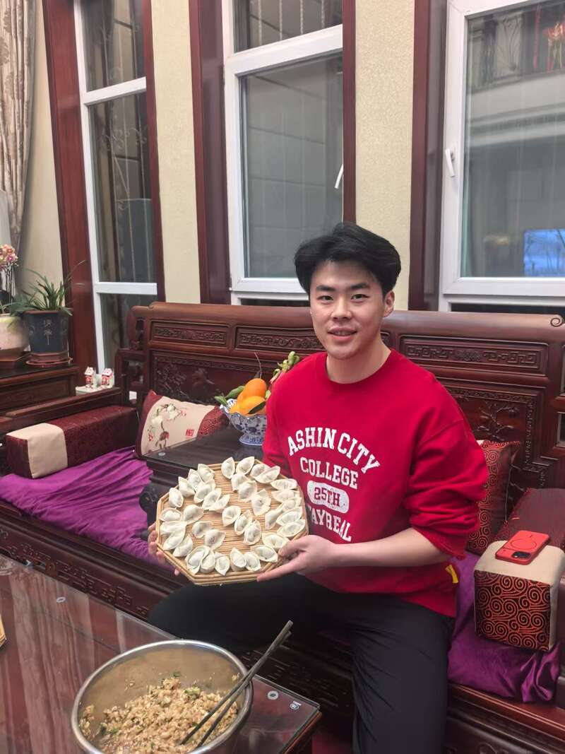 徐诗凯与家东谈主一谈包饺子。受访者供图