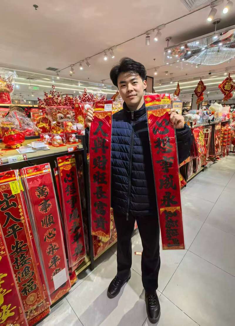 新年将至,徐诗凯赶赴超市挑选对联。受访者供图