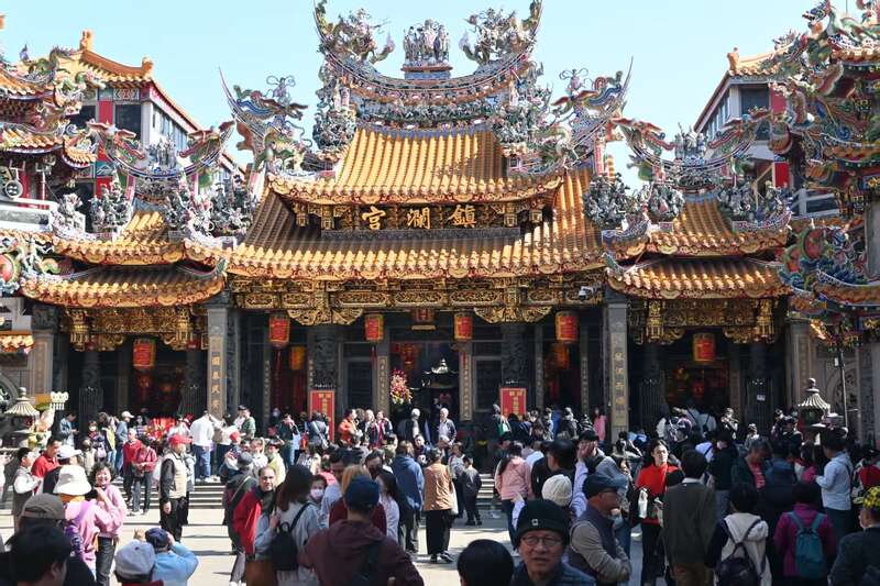 春节假期,台湾台中市大甲镇澜宫内东谈主头攒动。受访者供图